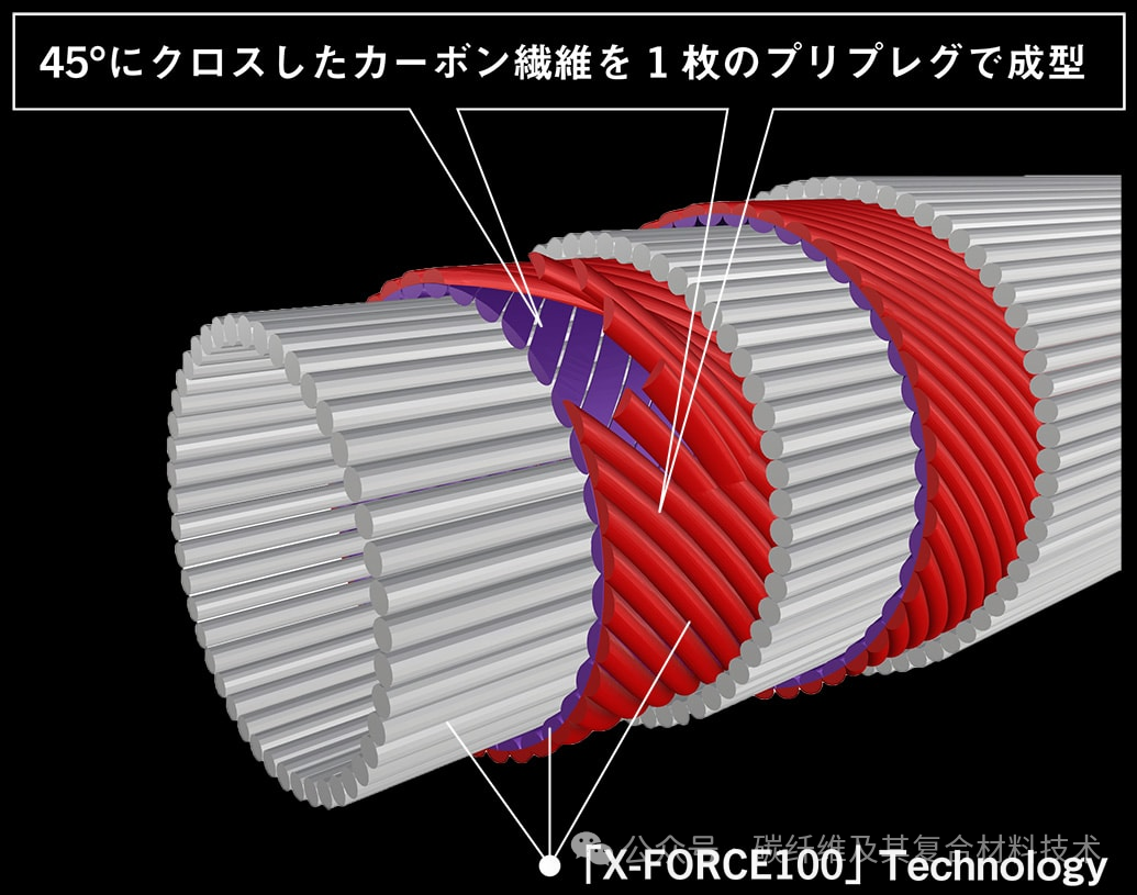 此次新研發(fā)的 Foojin’Z 第 6 代釣魚竿將搭載Apia的新技術(shù)「X-FORCE100」,它是碳纖維預(yù)浸料領(lǐng)域的開創(chuàng)性工藝。為了提高強(qiáng)度,傳統(tǒng)工藝是用不同的預(yù)浸料將碳纖維多方向?qū)盈B,但「X - FORCE100」是將扭轉(zhuǎn)強(qiáng)度高、呈45°交叉的碳纖維用單張預(yù)浸料成型。此外,還成功去除了用于加固碳纖維預(yù)浸料的 “玻璃纖維網(wǎng)布”。由此,誕生了由100%純碳纖維制成的釣魚竿,并具有以下主要特點(diǎn):